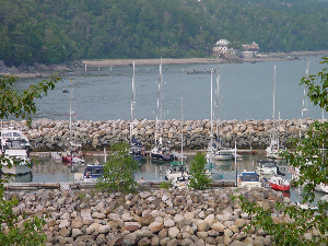 Als wir den Leuchtturm von Cap des Rosiers querab haben, freuen wir uns: nur noch wenige Meilen bis zum wunderbar geschuetzten Naturhafen in der Bucht von Gaspe´, die Nacht vor Anker mit Millionen hungriger Moskitos, am naechsten Morgen noch eine Stunde bis zum kleinen Stadthafen, wo wir wie Ehrengaeste behandelt werden. Auslaender und dann noch aus Uebersee verirren sich nur selten hierhin. Unverstaendlich, die Kleinstadt ist schnuckelig, der Supermarkt um die Ecke, die Kneipen franzoesisch gemuetlich, der Hafen sicher, die Menschen, auch wenn sie kaum englisch sprechen, freundlich. Hier koennen wir in Ruhe die naechsten Sturmtiefs aussitzen. |