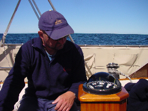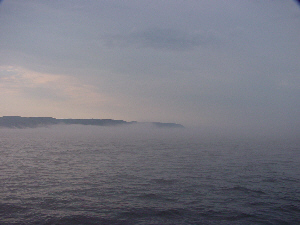 Die Passage von Rimouski nach Gaspe´ ist Seglers Traum: Wind von hinten, 20-25 Knoten, strahlender Sonnenschein, 230 nm schaffen wir in 30 Std., fuer unser ueberladenes Schiff eine unglaubliche Leistung. Erinnert sehr an Nordsee, jede Menge Fischer in der Nacht und schweinekalt. Das sind die Momente, in denen wir wissen, warum wir diese unbequeme Art zu reisen gewaehlt und zu unserem Leben gemacht haben. Auch wenn wir es manchmal hassen, es bleibt "Der Blaue Traum". |
