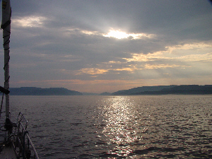 Weiter geht´s auf der Strasse der Entdecker, Haendler und Soldaten, die auch heute noch die Lebensader Kanadas ist. Die Namen Cartier, Champlain (die Entdecker) und Richelieu (einer der begnadetsten Politgangster der europaeischen Geschichte und Finanzier der lukrativen Eroberungen in "Neufrankreich") begegnen uns an jeder Ecke. Aber auch ohne dies sind Natur und Landschaft ueberwaeltigend. Der grosse Strom zieht uns in seinen Bann. Staendig muessen wir auf der Hut sein, Gezeitenstroeme von ueber 7 Knoten noetigen uns Respekt ab. |