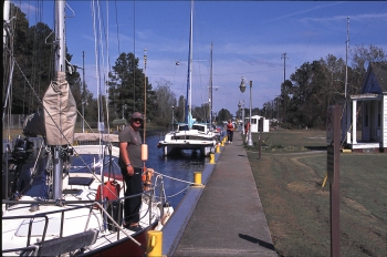 Von Norfolk, Virginia, ICW bis Georgetown,South Carolina. Bei Sonnenaufgang starten und bis zum Nachmittag motoren, um entsprechend Meilen zu machen. Nur ab und zu mal die Möglichkeit in offenerem Wasser etwas zu segeln. Saison im ICW. Segler und Motorboote fahren nicht endender Prozession hintereinander her und an den Dreh- oder Hebebrücken gibt es dann regelmaessig Staus, bis zur nächsten Öffnung. Hunderte muessen hier unterwegs sein und viele machen die Tour zweimal im Jahr. Im Herbst nach Florida oder auf die Bahamas, im Fruehjahr wieder zurueck nach Norden, meistens in die Chesapeake Bay.