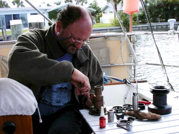 Bis Georgetown hielten wir das durch, dann nutzten wir die Gelegenheit eines günstigen Nord-Ostwindes und segelten aussen vor der Küste bis zum Ponce Inlet, New Smyrna Beach, in Florida. Nach 3 Tagen und 2 Nächten waren wir da, immer bemüht weit genug draussen zu segeln, um genügend Wind zu haben, aber wiederum nicht so weit, dass uns der gegenlaeufige Golfstrom erfasst.Endlich wieder warm. Palmen, Delfine, Pelikane, so schoen der Norden auch ist, warm und Sonne sind einfach nicht zu schlagen. Einen Monat (November) sind wir in dieser netten Kleinstadt geblieben, hauptsaechlich um zu reparieren, oder zu ersetzen. Computer, Autopilot, Echolot, Funkmodem, Kurzwellenfunkgeraet (ist immer noch in Reparatur), Digitalkamera, Steuerleinen, Winschen, die Liste laesst sich beliebig fortsetzen. Jedenfalls haben wir von der Gegend nicht viel gesehen und jetzt sind wir auch schon wieder unterwegs, weiter Richtung Sueden... |
