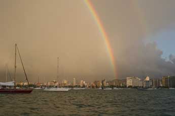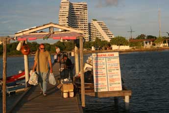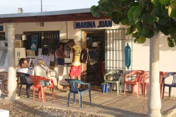 Der beste Platz, um in Margarita an Land zu gehen, ist Marina Juan. Die Bucht von Porlamar ist eine grosse Ankerbucht. Der Grund ist meist Sand und man ankert mit gutem Halt bei ca. 3m Wassertiefe. An Land ist ein bewachtes Dinghydock, wo man auch seinen Muell abgeben kann. Pedro und seine Jungs geben gegen einen kleinen Obulus darauf acht. Juan Baro bietet eine Reihe von Services, die gerne von den Boatern genutzt werden. Besonders die Uebernahme der Buerokratie des Ein- und Ausklarierens fanden wir extrem hilfreich. Weiter organisiert er einen taeglichen, kostenlosen Busservice zu verschiedenen Supermaerkten, jeweils um 9:30 morgens, Abgabe von Waesche und Fertigstellung am gleichen Tag, Auffuellen von Wassertanks, Internet und WiFi .... Es gab in den letzten Wochen mehrere Rettungsaktionen hier, Juan hat sich sehr engagiert und selbstlos bei der Organisation eingesetzt. Er fuehlt sich fuer die Segler in "seiner" Bucht verantwortlich. |