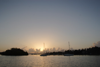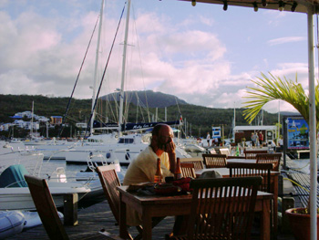 Martinique ist die groesste Insel der franzoesischen Ueberseeterritorien in der Karibik. Ein Stueck Europa mitten im Atlantik. Der Ankerplatz in Les Marins war richtig gut, geschuetzt, jede Menge zu sehen, und ein franzoesischer Supermarkt mit eigenem dinghy Anleger in unmittelbarer Naehe. Was haben wir uns ueber europaeische Lebensmittel gefreut ... |