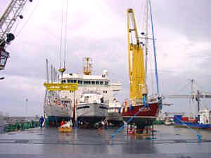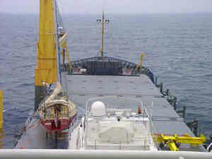 Die Aeola befindet sich, zusammen mit 3 Motoryachten, als Deckslast