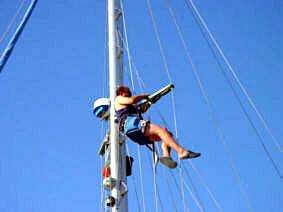 Beim Segeln scheuerte das neue Gross erheblich an den gepfeilten Salingen. Ob Polstern hilft??? |