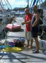 liegt im Päckchen an der Hafenmauer der Marina. Im Hintergrund sieht man Teile der legendären
